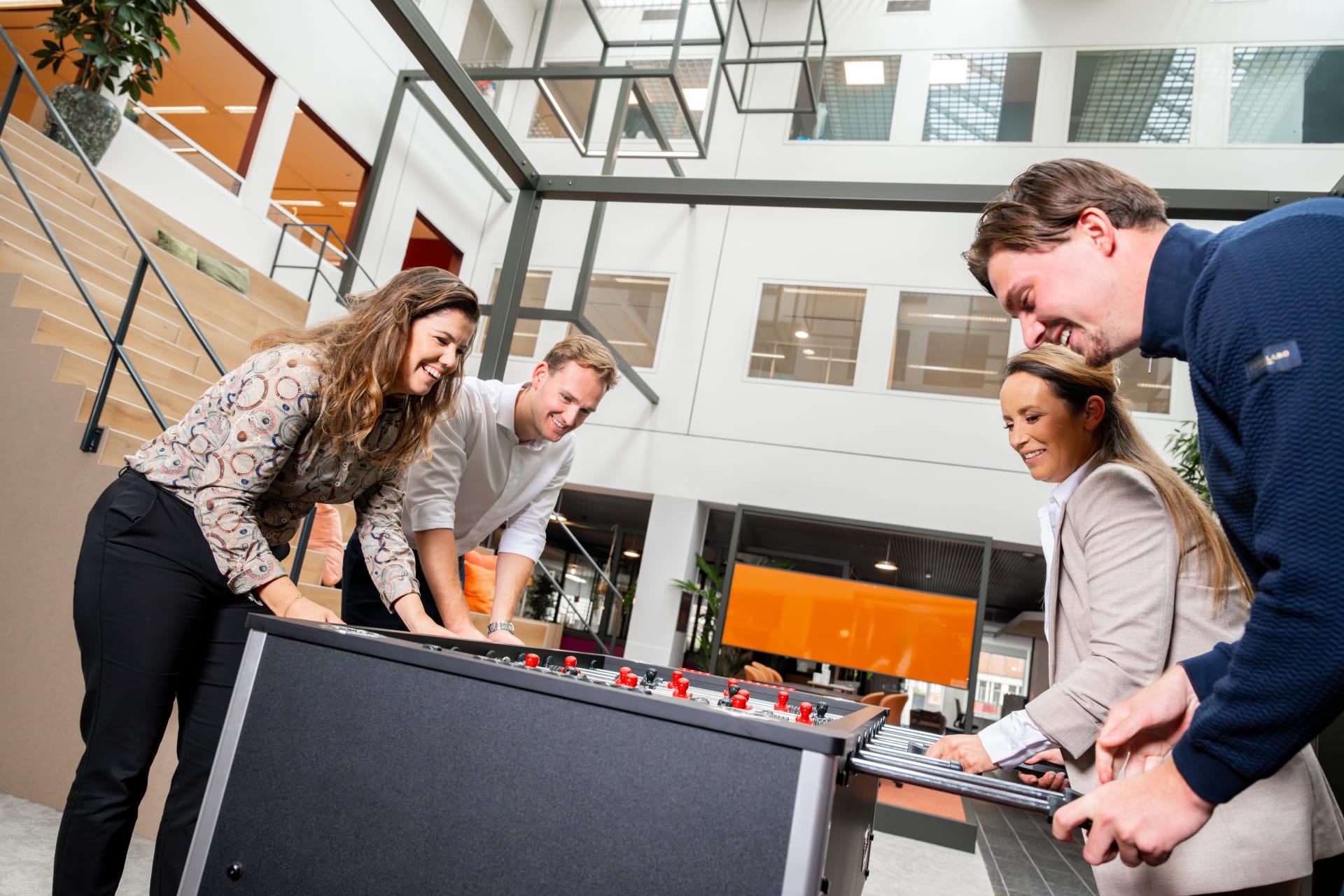 Samenwerken is de basis van ons succes. En succes vieren doen we samen. Wij houden allemaal van hard werken en van gezelligheid. Regelmatig gaan we na een drukke dag nog even de stad in om een hapje te eten. Eén van de voordelen van een kantoor in het centrum van Eindhoven!